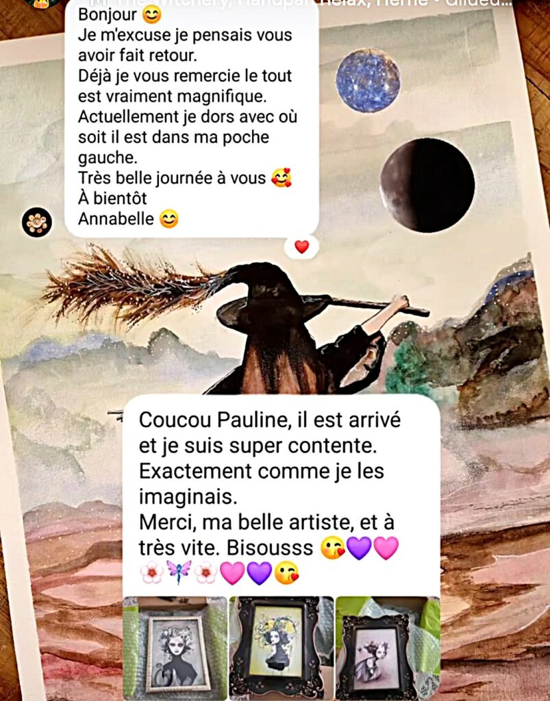 « Commander une création sur mesure » Sur papier ou sur toile de qualité, vous me parler de votre projet et si celui-ci me parle, je le valide avec vous et je m’occupe du reste! Une sorcière, une plante, une âme vagabonde, une chaumière! Offrez-vous ma magie!