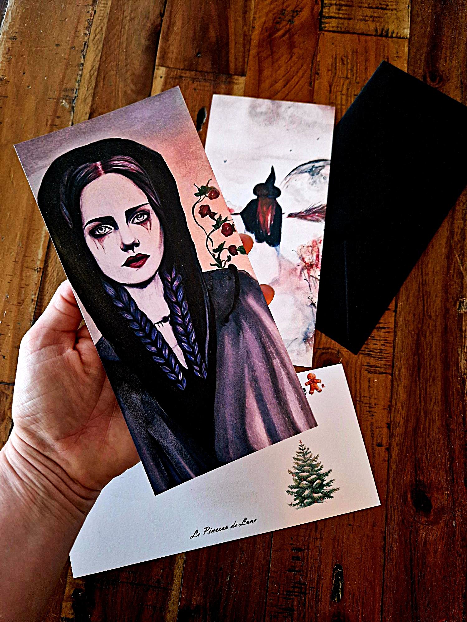 Chaque carte (10 × 20 cm) est imprimée sur un papier épais et accompagnée d’une enveloppe noire (11 × 22 cm), comme une nuit d’hiver prête à révéler sa lumière.